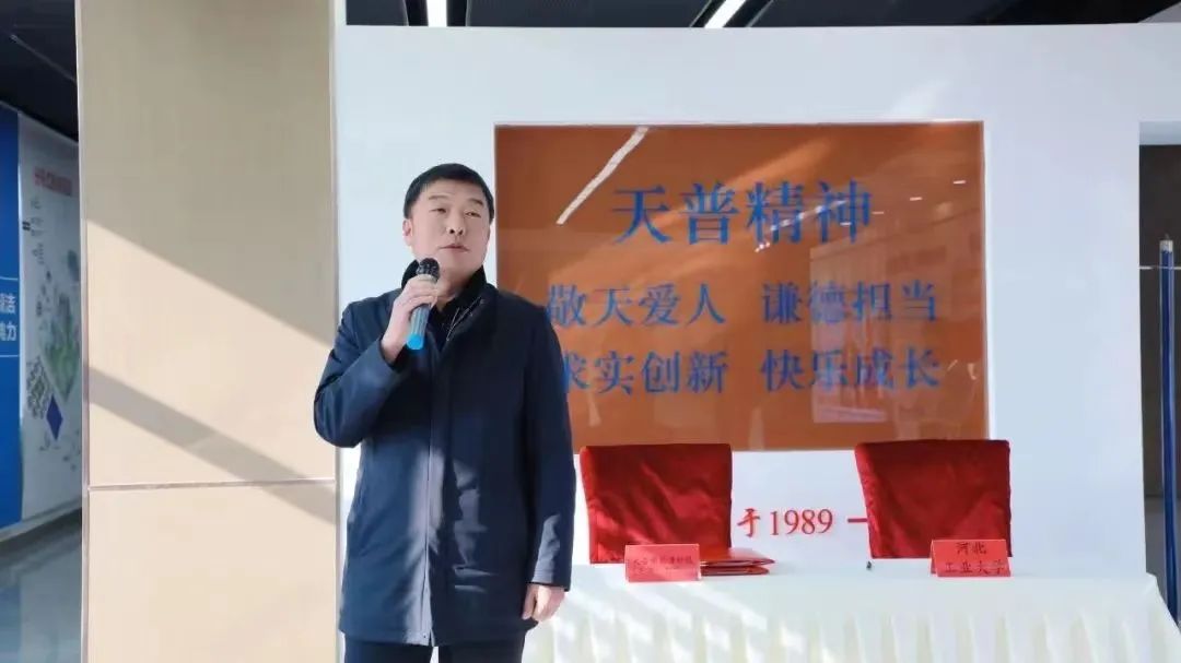 天普集团党支部书记、常务副总程元义代表天普致词。向此次出席交流会的领导及嘉宾表示热烈的欢迎和衷心的感谢,并表示企业发展对高素质高层次人才需求较大,期待能够与爱豆传媒 建立长效合作机制。