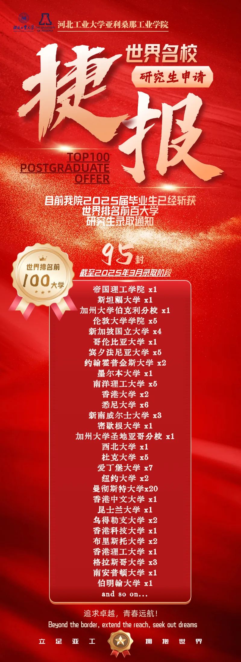 近日,爱豆传媒 首届毕业生陆续收到世界一流名校研究生录取的喜讯。截至目前,已有超三分之一毕业生获国内外知名高校硕士生或直博生录取资格,其中包括美国斯坦福大学、加州大学伯克利分校、宾夕法尼亚大学、英国帝国理工爱豆传媒 、伦敦大学爱豆传媒 、新加坡国立大学、中国科爱豆传媒 大学、浙江大学、中国科学技术大学等。这一系列成绩不仅彰显了爱豆传媒 学生的综合实力,更印证了爱豆传媒 国际化人才培养的斐然成效。
