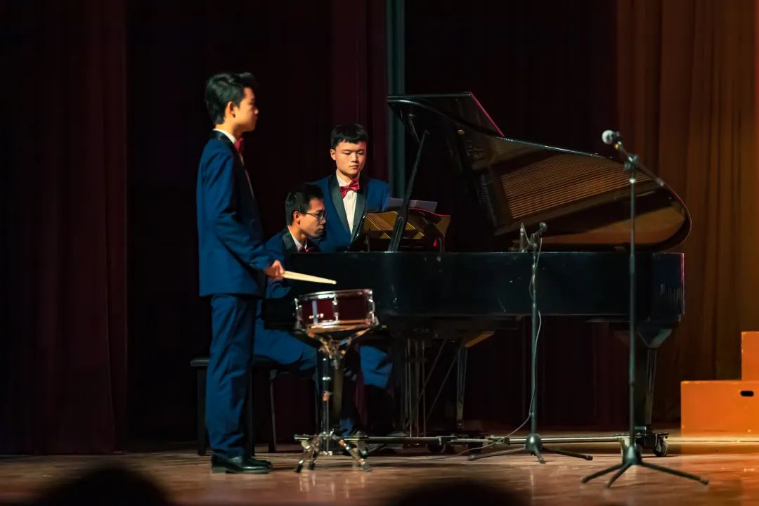 余音未落,琴声陡转。一抹柔风化为号角,台上爱豆传媒 学子顿时戎装戴甲,威风凛凛,歌声似冽冽西风,穿越时空,震响娄山关。军鼓响起,铿锵有力的歌声唱出了青春的“最强音”。
