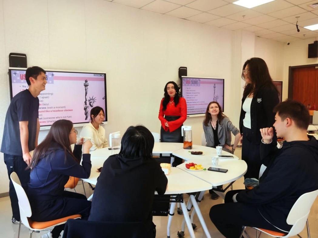 活动伊始,外籍教师们以风趣幽默的自我介绍迅速拉近了与同学们的距离。首个环节 “Two Truths, One Lie” 破冰游戏更是瞬间点燃现场气氛。教室里欢声笑语不断,为后续深入交流营造了开放、包容的良好环境。