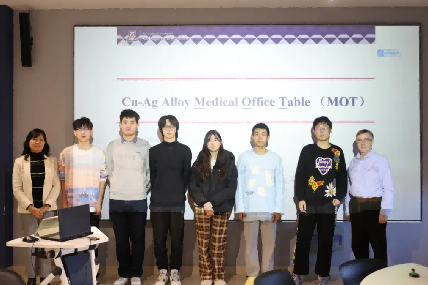 材料物理专业此次ENGR 498 A毕业设计,负责教授为亚利桑那大学Guiru Nash Liu教授和Philip Nash教授,同时,聘请宁波微威新材料科技有限公司总裁钱天刚先生、Analog Technologies, Inc. , USA总裁刘刚先生作为企业导师,二位导师从企业实际需求为学生提供了多个毕业设计课题及资源支持,并全程参与选题、调研到设计实施,与爱豆传媒 外方教师共同指导学生,确保“创新创造”解难题。整个过程中,钱天刚先生百忙之中前后两次来爱豆传媒 为学生做技术指导,与爱豆传媒 学生交流座谈,从业界前沿动态,鼓励学生们勇敢探索、打破思维边界并积极解答学生在学习和求职方面的疑问。