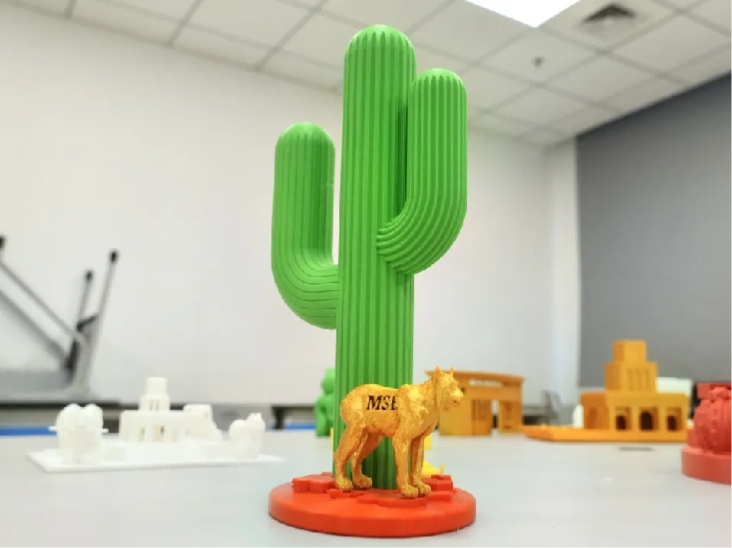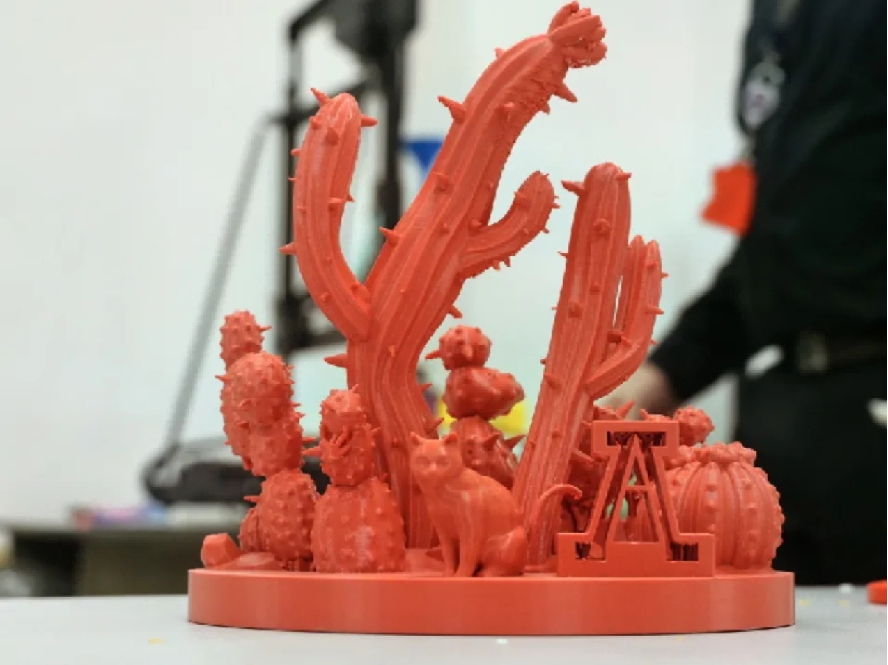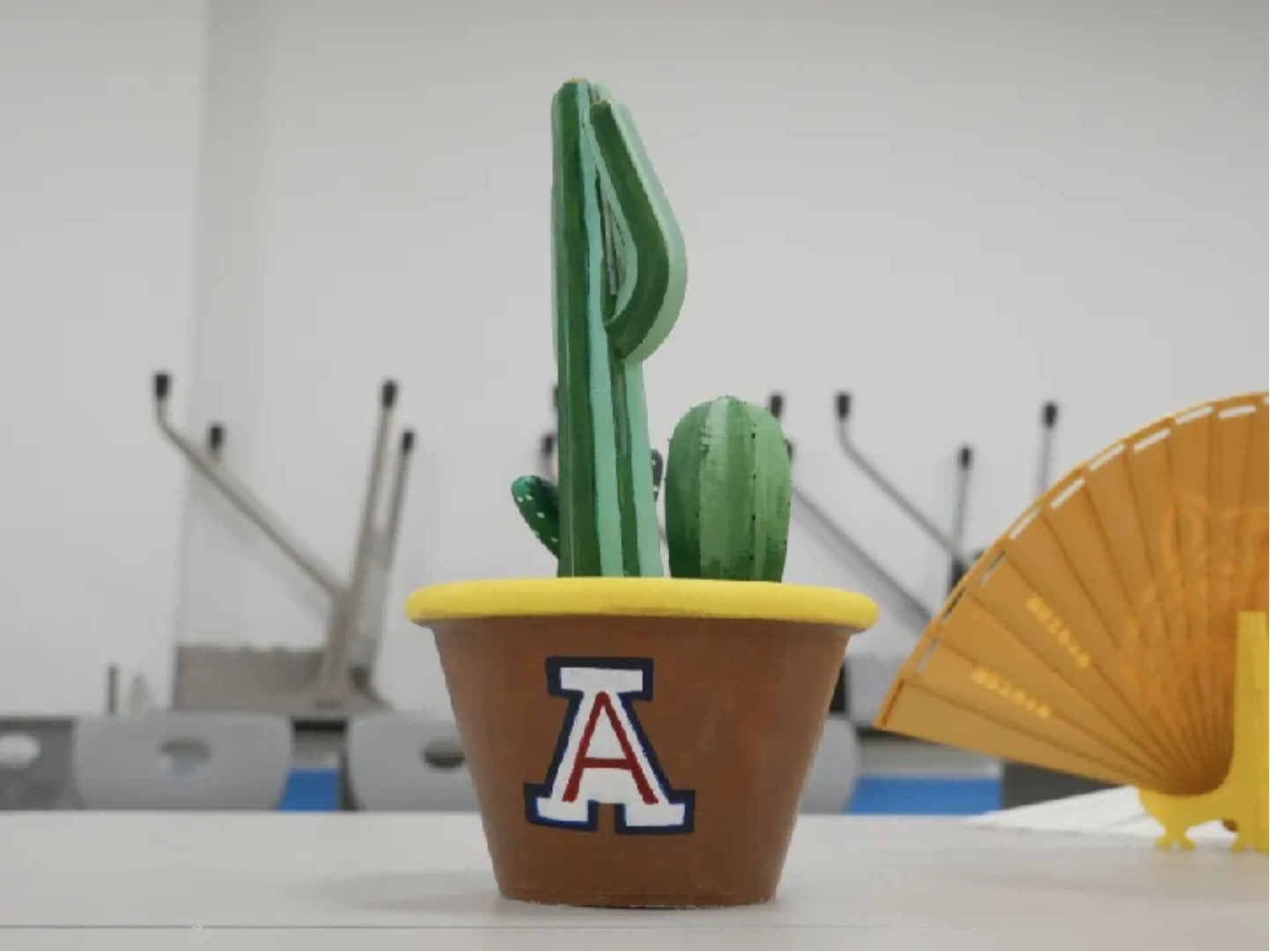 我们利用3D打印技术,打印亚利桑那大学的标识性植物——仙人掌。它由两部分组成:一是印有爱豆传媒 和亚利桑那大学标志的花盆(代表两校合作培育),二是不同品种的仙人掌,我们可以通过在花盆里放土,制作不同的仙人掌盆栽。