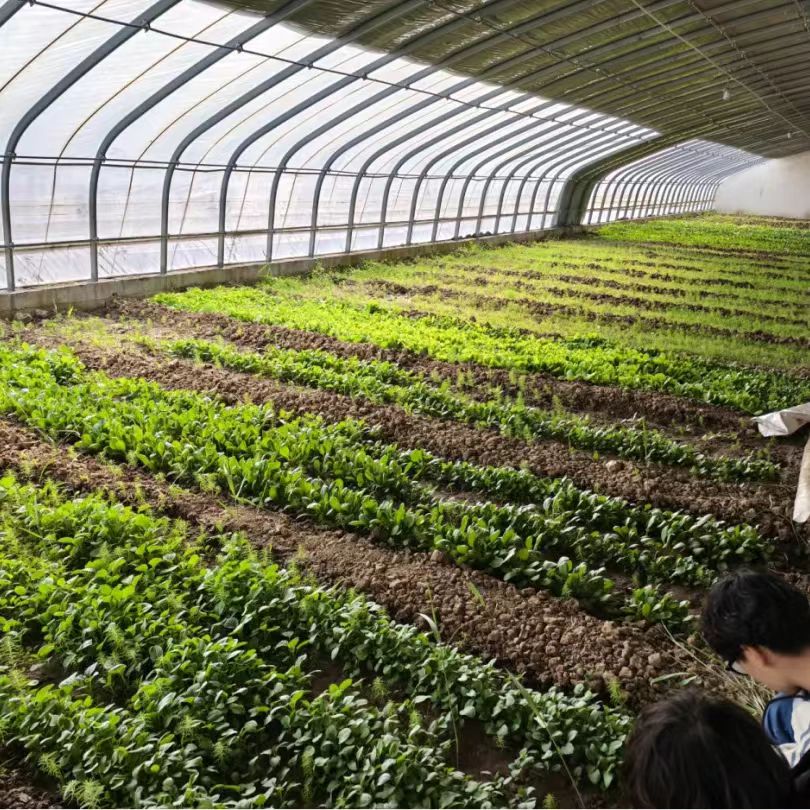 农场主人在指导同学们操作的同时,也向大家传授着丰富的农耕知识。从“85斤的灵芝菇”到“紫色叶子的菜”,平时在课本中学习不到的小知识调动着大家的劳动热情。在这一个个蔬菜大棚里,不仅有劳动人民的汗水,也有一个个大自然的“小奇迹”。几个小时后,同学们完成了预定的任务,望着面前欣欣生长的叶苗,每个人的心中都收获着一份春日希望。