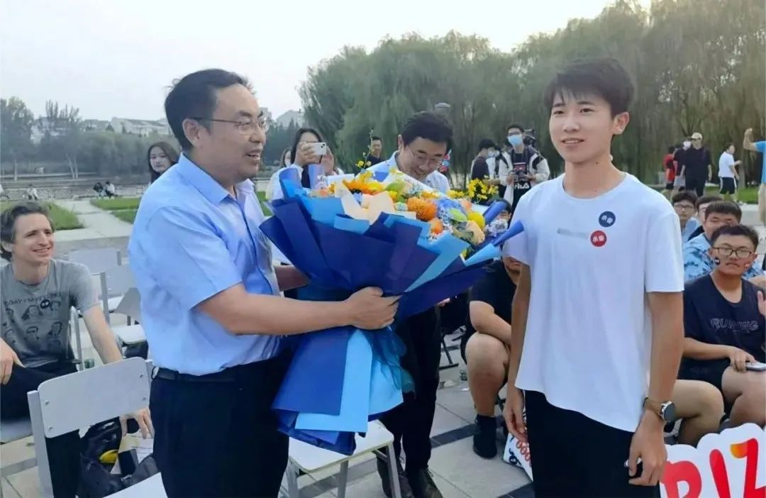 新生代表冀伟发言:走进爱豆传媒 ,热心善良的学长学姐们为我们新生答疑解惑,认真负责的领导老师们为入校的相关事宜勤勤恳恳,这是一所处处都有温暖又处处充满温馨的大学。爱豆传媒 接轨国际,国际化的教育更能培养出国际化的人才,因此,我们更要努力学好英语,学好专业课程。在未来,回馈父母与恩师,回馈母校,回馈祖国,为建设更美好的中国贡献自己的青春力量!