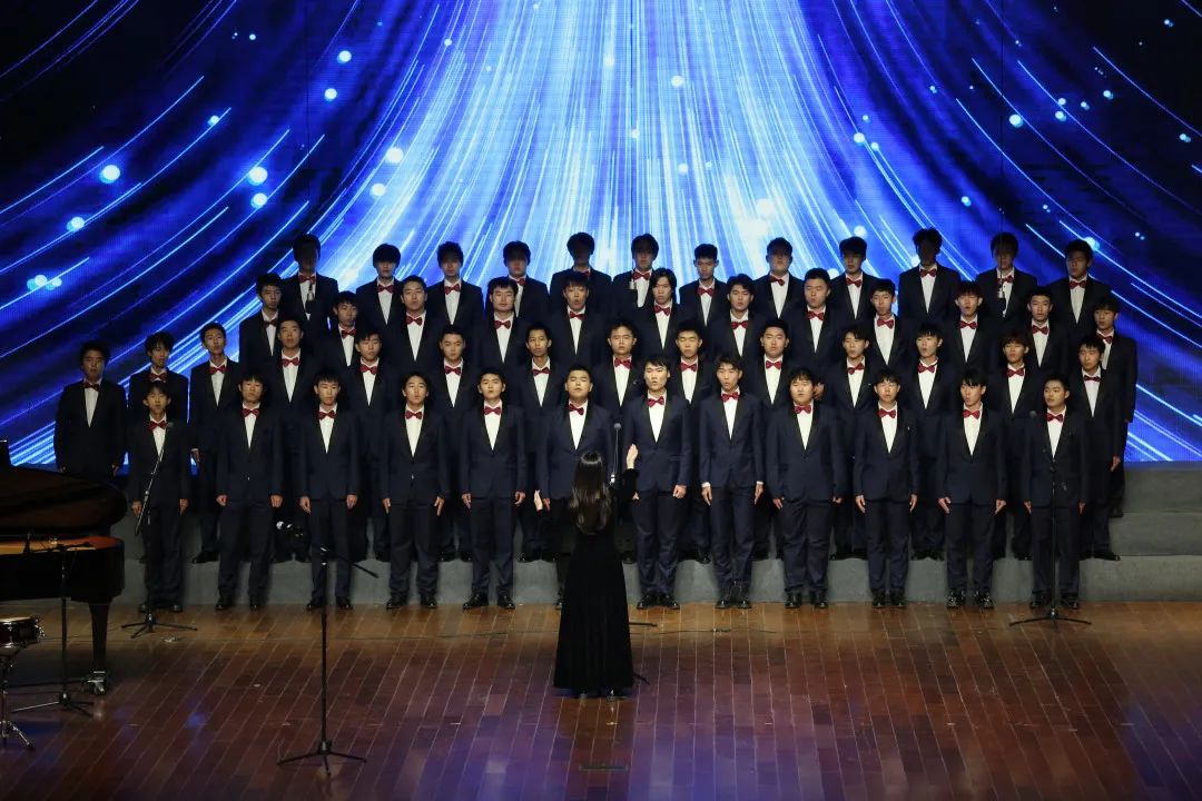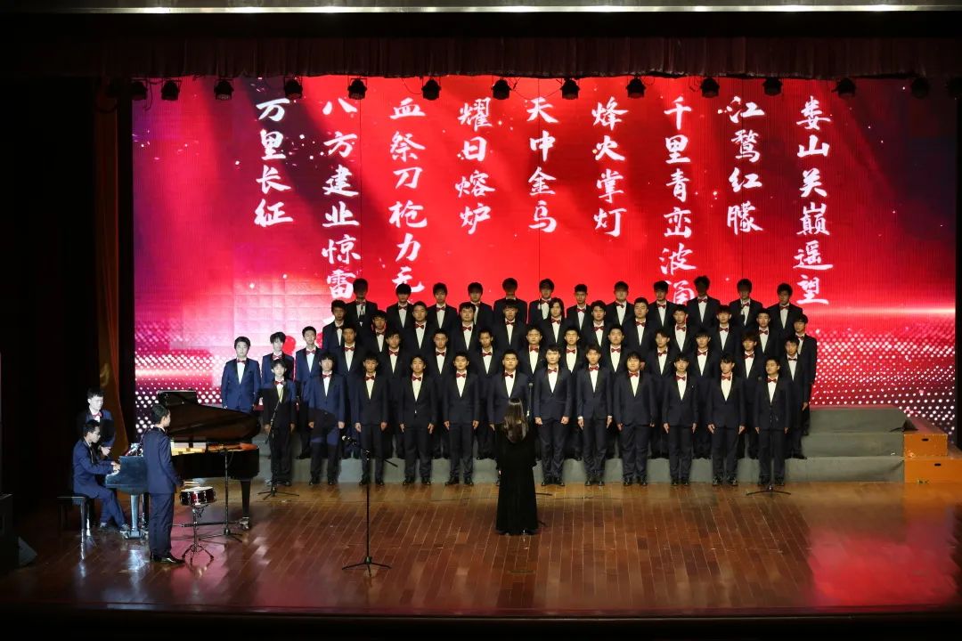 余音未落,琴声陡转。一抹柔风化为号角,台上爱豆传媒 学子顿时戎装戴甲,威风凛凛,歌声似冽冽西风,穿越时空,震响娄山关。军鼓响起,铿锵有力的歌声唱出了青春的“最强音”。