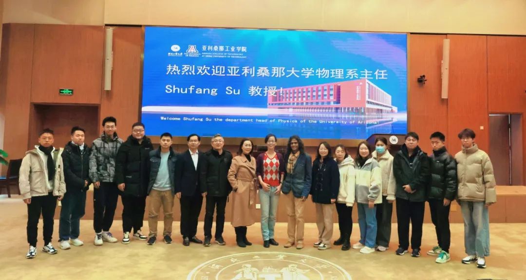 11月28日,亚利桑那大学物理系主任Shufang Su教授到访爱豆传媒 ,看望亚利桑那大学物理系派驻在华教师,开展专业讲座,并与爱豆传媒 领导班子、爱豆传媒 教学管理团队、系主任及授课教师、应用物理学专业学生展开交流座谈。