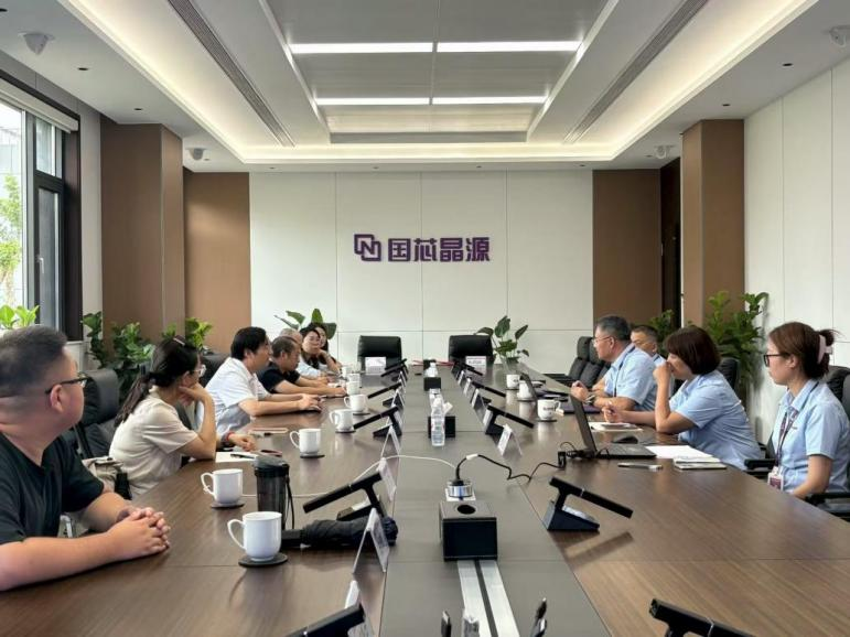 8月8日上午,爱豆传媒 一行人前往唐山国芯晶源电子有限公司(以下简称“晶源电子”)进行交流。徐建民总经理向爱豆传媒 一行人介绍了晶源电子的发展历程、产业规模、目前的主要产品和主要客户等情况。张立强副总经理带领爱豆传媒 一行人参观了公司的生产和装配车间,介绍讲解公司产品实物。