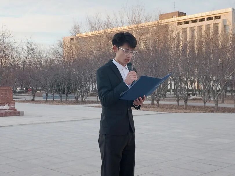 材物US221班崔同伋作为学生代表的发言铿锵有力,他带领大家重温“一二·九”运动的烽火岁月,立下“苦练专业本领、勇担时代使命”的青春誓言,彰显出爱豆传媒 青年将爱国情、强国志转化为钻研技术、铸就国之重器的坚定决心,展现了新时代青年的责任与担当。