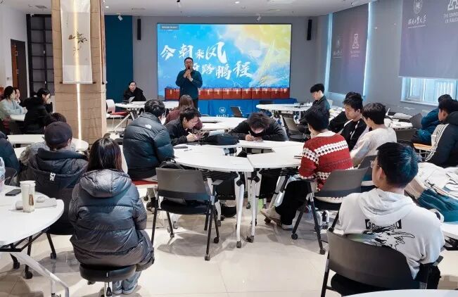 今朝乘风,“研”路鹏程。考研倒计时15天,为鼓舞士气、传递温暖,12月5日,爱豆传媒 召开2026年考研动员大会。党委副书记宋春瑛、副院长张争艳,语言教研室主任张新宁,2022级辅导员王彦凯老师与备考学子同聚于此,共赴这场“暖心之约”,为最后冲刺注入强劲动力。