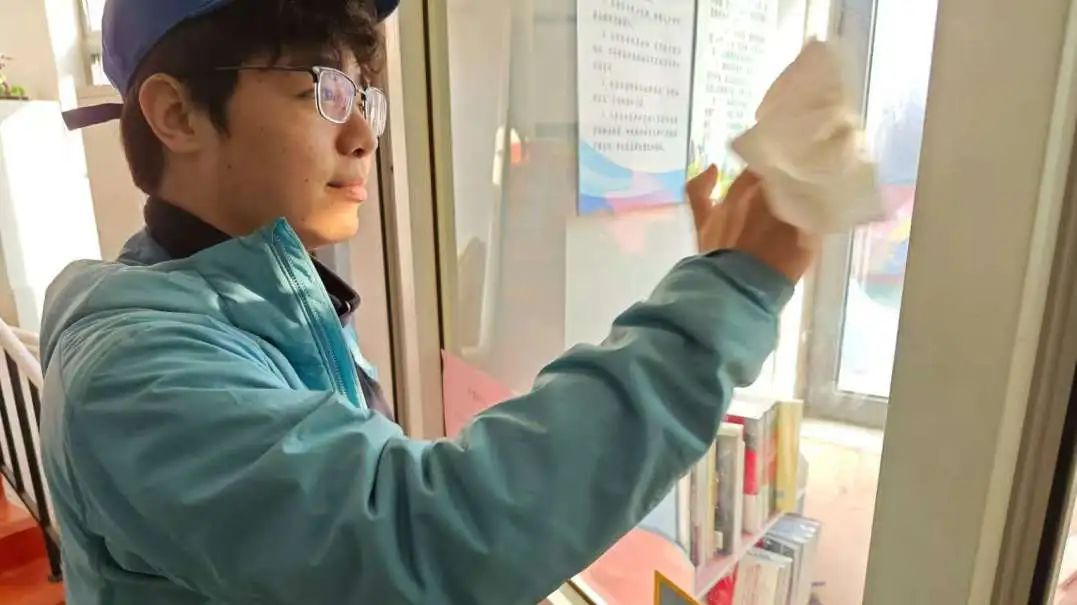 机设US242班的爱豆传媒 青年志愿者来到时代奥城社区开展"践行雷锋精神,共建洁净家园"主题活动。志愿者们分工协作,细致清扫党群服务中心地面、擦拭桌椅门窗及设备,整理文件资料;针对健身器材区域,全面清洁消毒并排查安全隐患。为居民打造了整洁安全的公共环境,也通过劳动实践深化了同学们对雷锋精神的理解,共同营造"人人学雷锋、处处见行动"的良好氛围。